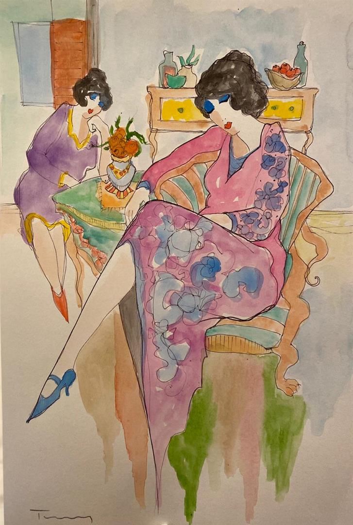 Itzchak Tarkay "UNTITLED 51" Hand Signed Mixed Media Watercolor on Paper Dimensions: 18 x 12 Inches
