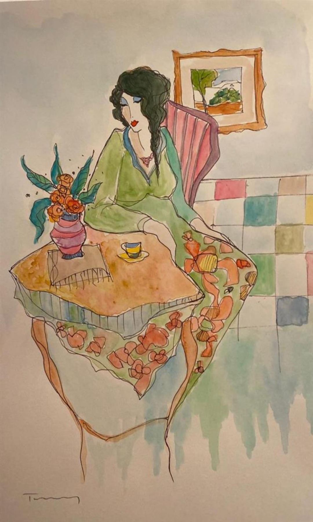 Itzchak Tarkay "UNTITLED 56" Hand Signed Mixed Media Watercolor on Paper Dimensions: 18 x 12 Inches