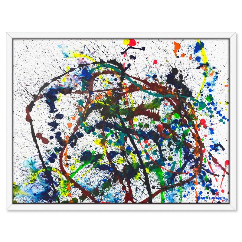 "Untitled Abstract" is an original painting on canvas by Wyland, hand signed by the artist. This piece comes custom framed. Includes Letter of Authenticity. Measures approx. 40" x 52" (frame), 37" x 49" (image). This item requires special handling and may have a longer than usual turnaround.