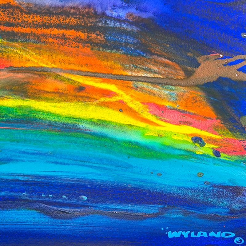"Untitled Abstract" is an original watercolor painting on paper by Wyland, hand signed by the artist. This piece comes custom framed. Includes Letter of Authenticity. Measures approx. 34" x 48" (frame), 26" x 40" (image). This item requires special handling and may have a longer than usual turnaround.