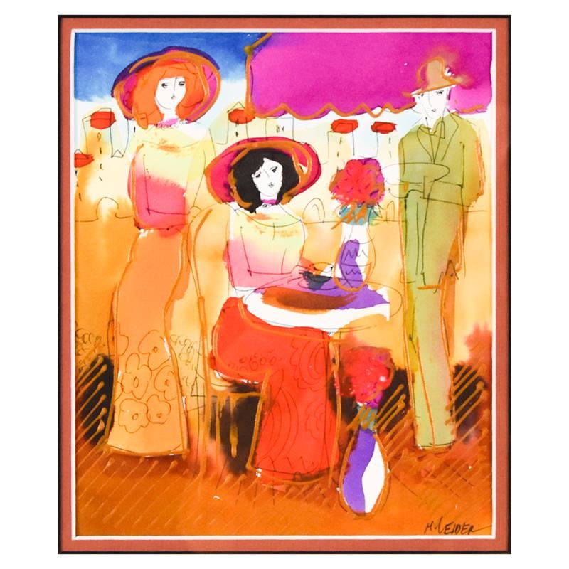 Untitled By Leider Original. This is an original mixed media watercolor painting on paper by Moshe Leider, hand signed by the artist. This piece comes custom framed. Includes Letter of Authenticity. Measures approx. 15.5" x 17" (frame), 7" x 9" (image).
