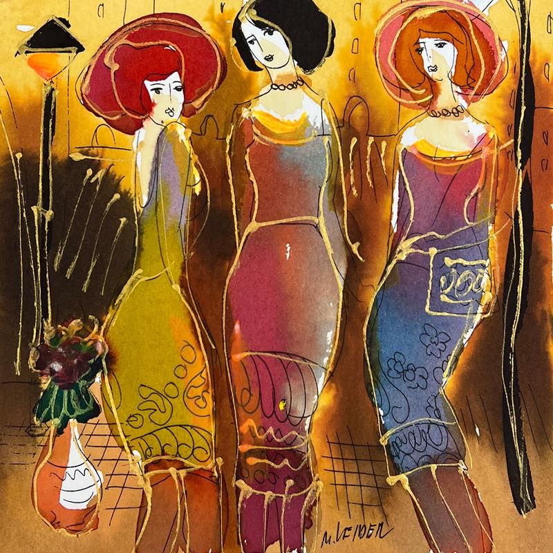 Untitled By Leider Original. This is an original mixed media watercolor painting on paper by Moshe Leider. Hand signed by the artist, this piece comes custom framed and includes a Letter of Authenticity. Measures approximately 16" x 15" (frame), 9" x 8" (image).