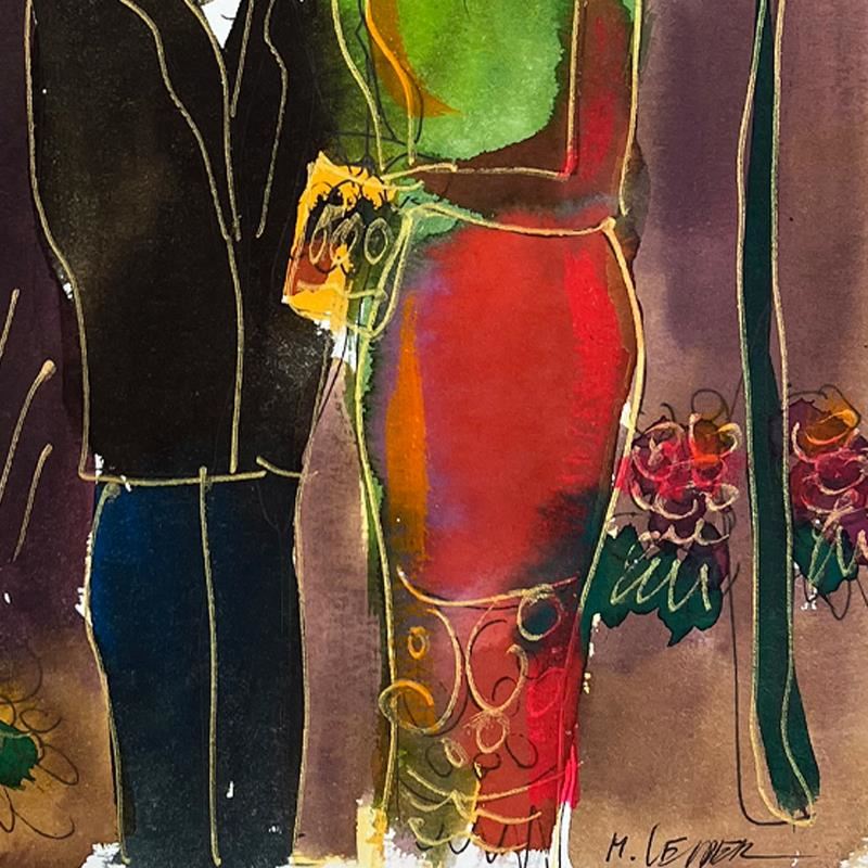 Untitled By Leider Original. This is an original mixed media watercolor painting on paper by Moshe Leider. Hand signed by the artist, this piece comes custom framed and includes a Letter of Authenticity. Measures approximately 18.5" x 16" (frame), 11.5" x 9" (image).