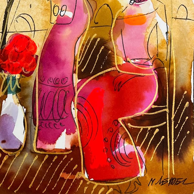 Untitled By Leider Original. This is an original mixed media watercolor painting on paper by Moshe Leider. Hand signed by the artist, this piece comes custom framed and includes a Letter of Authenticity. Measures approximately 15" x 13.5" (frame), 8" x 6.5" (image).