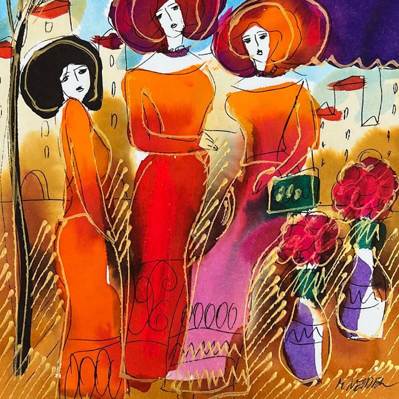 Untitled By Leider Original. This is an original mixed media watercolor painting on paper by Moshe Leider. Hand signed by the artist, this piece comes custom framed and includes a Letter of Authenticity. Measures approximately 16" x 15" (frame), 9" x 8" (image).