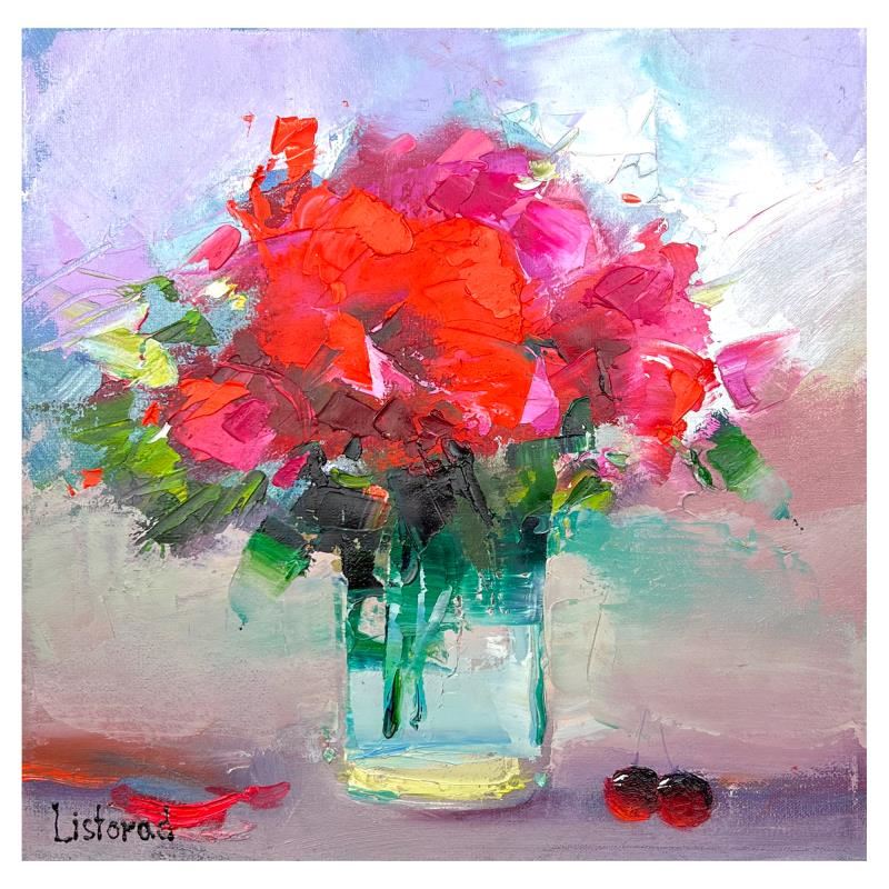 Untitled By Listopad Original. This is an untitled original painting, acrylic on canvas by Natalya Listopad. It is hand signed by the artist and comes with a letter of authenticity. Measures approximately 12" x 12" (image).