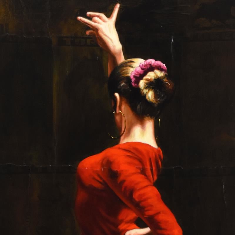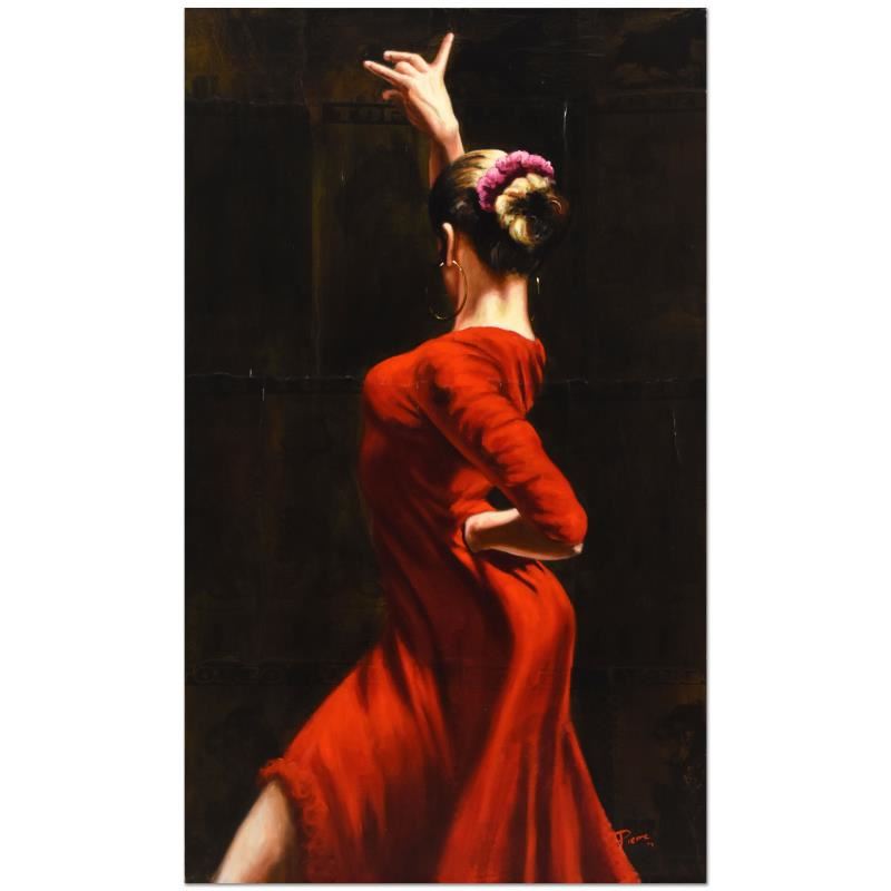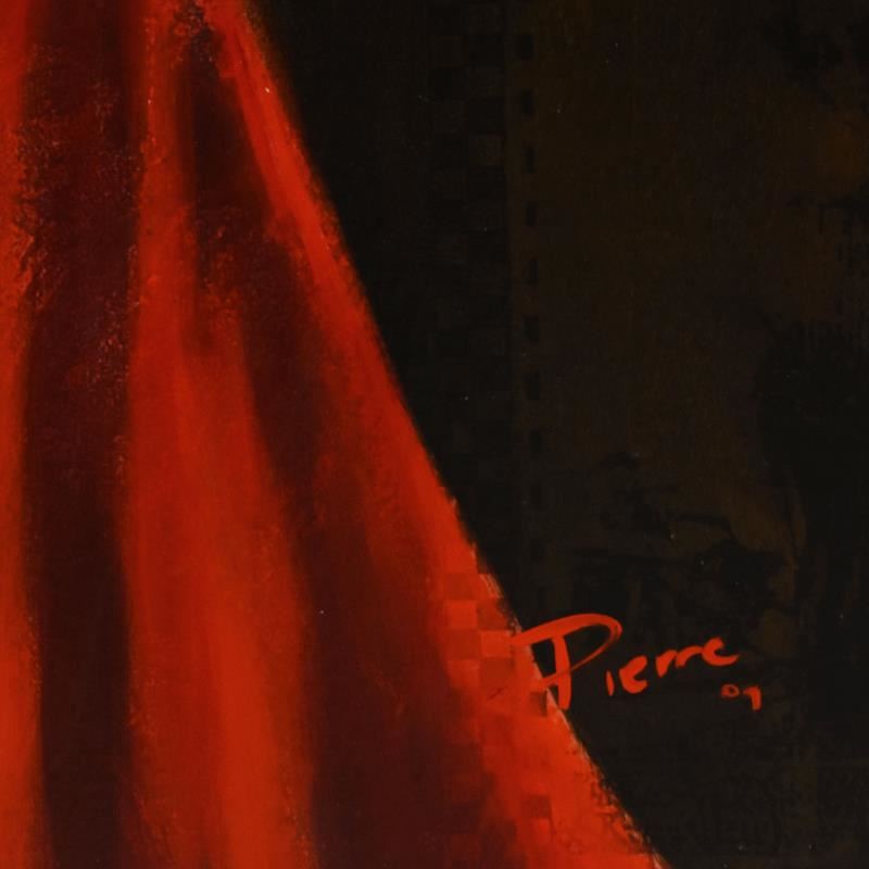 Untitled By Silva Original. This is an original painting on gallery wrapped canvas by David Silva, hand signed using the nom de plume, Pierre. The artist uses a technique in which he fuses a base layer of paper on top of the canvas before applying oil paint. Includes Letter of Authenticity. Measures approx. 30" x 50" (image). Please note: there is minor wear on the corners and edges, and several scuffs on the image that are only noticeable upon close inspection.