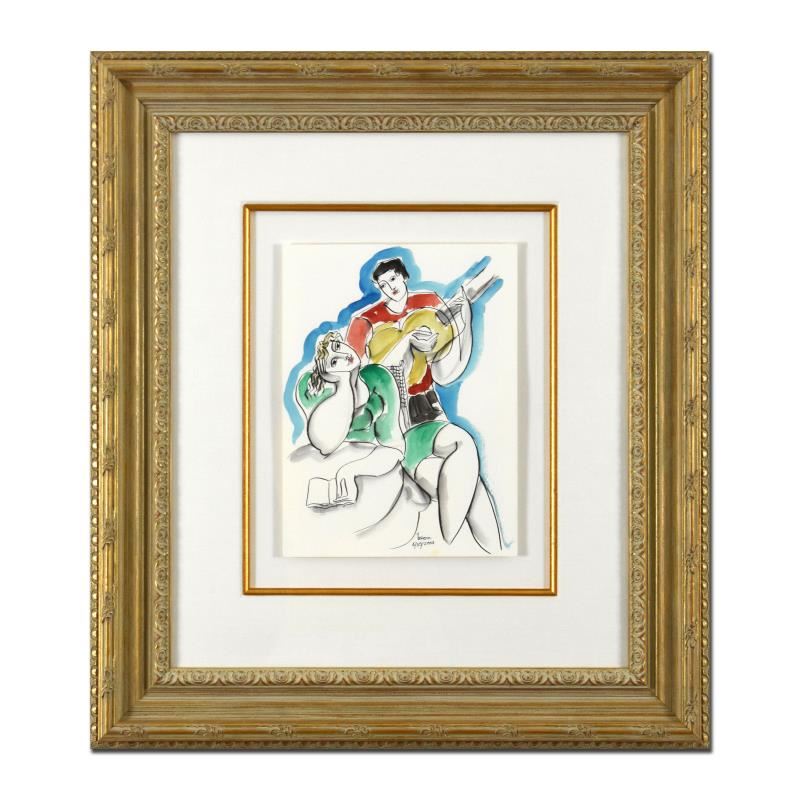 Untitled By Yuroz Original. This is an original mixed media watercolor painting on paper by Yuroz, hand signed by the artist. This piece comes custom framed. Includes Letter of Authenticity. Measures approx. 23.5" x 26.5" (frame), 9" x 12" (image).
