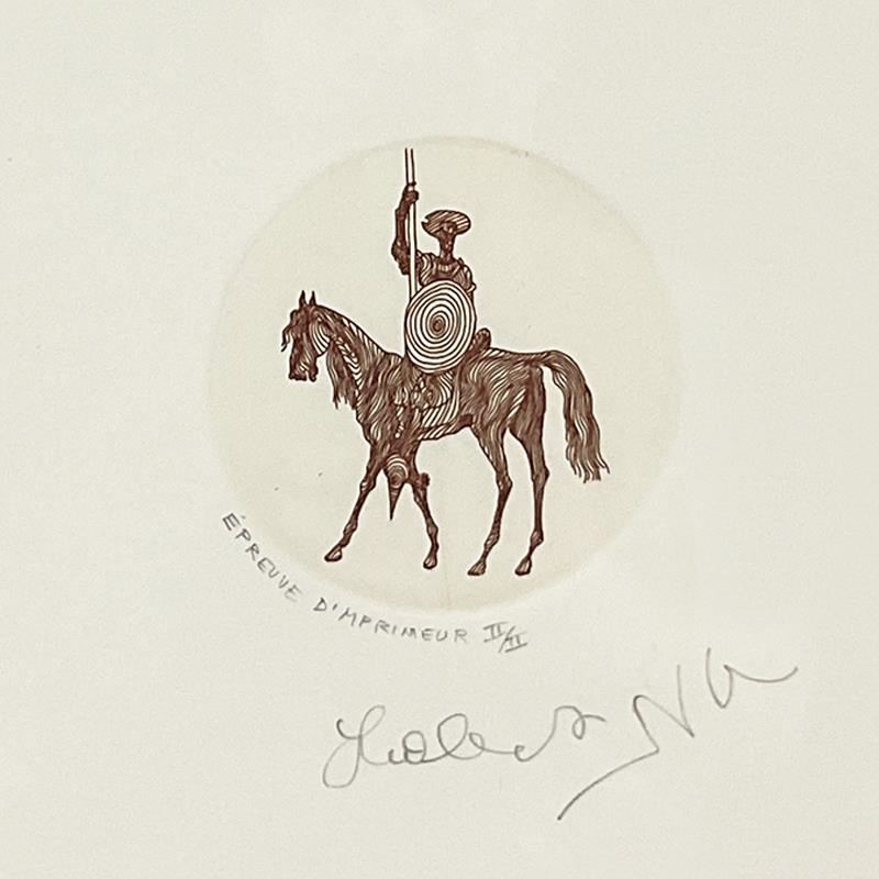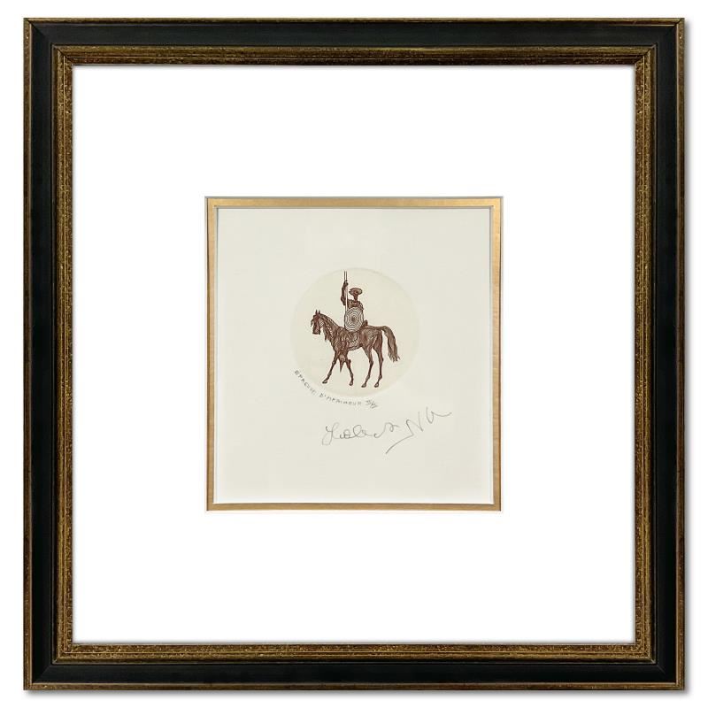 This is a limited edition etching on paper by Guillaume Azoulay, numbered II/II and hand signed by the artist. This piece comes custom framed. Includes Letter of Authenticity. Measures approx. 18" x 18.5" (frame), 3.5" (image-diameter). There is a small nick on the top-left frame panel that is only visible upon close inspection.