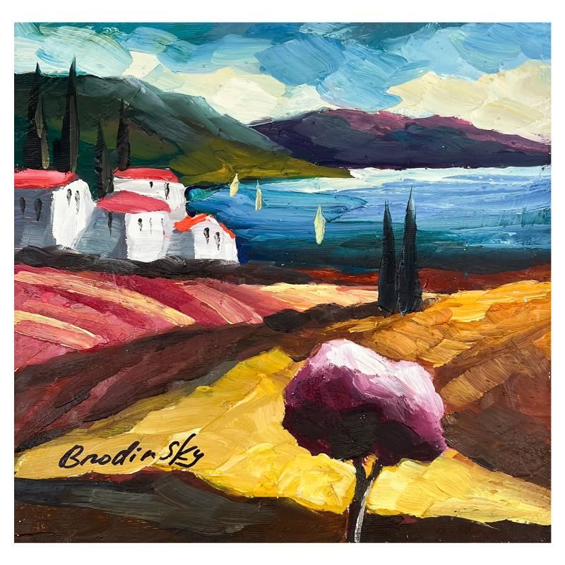 This is an original painting oil on canvas by Slava Brodinsky. Hand signed by the artist, this piece comes with a letter of authenticity. Measures approximately 10" x 10" (image).
