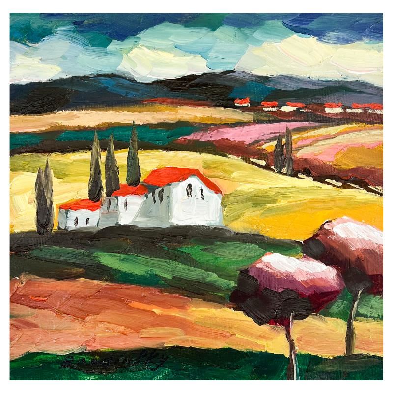 This is an original painting oil on canvas by Slava Brodinsky. Hand signed by the artist, this piece comes with a letter of authenticity. Measures approximately 10" x 10" (image).
