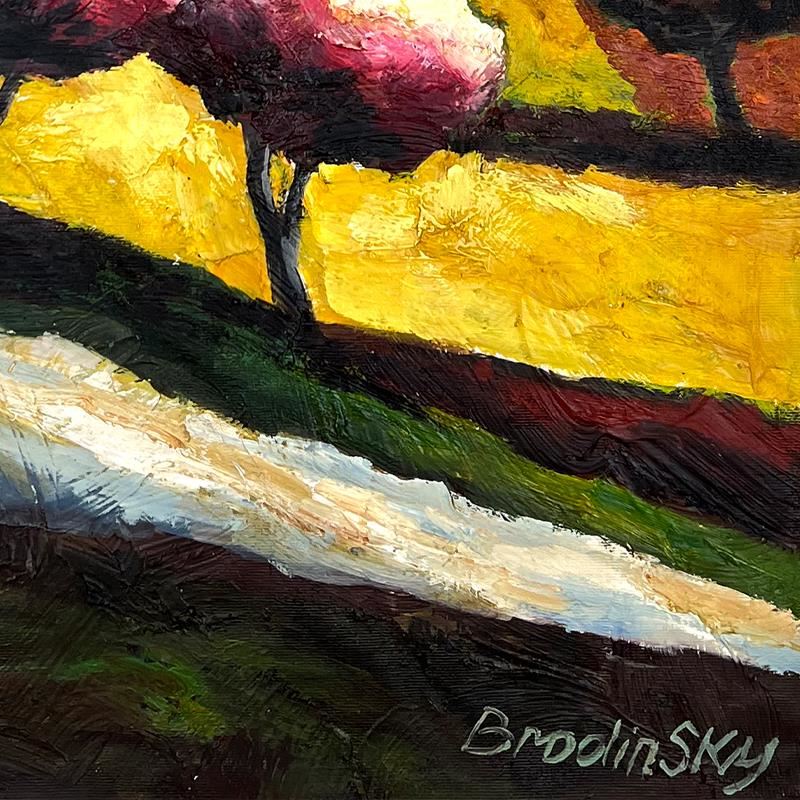 This is an original painting oil on canvas by Slava Brodinsky. Hand signed by the artist, this piece comes with a letter of authenticity. Measures approximately 30" x 16" (image).