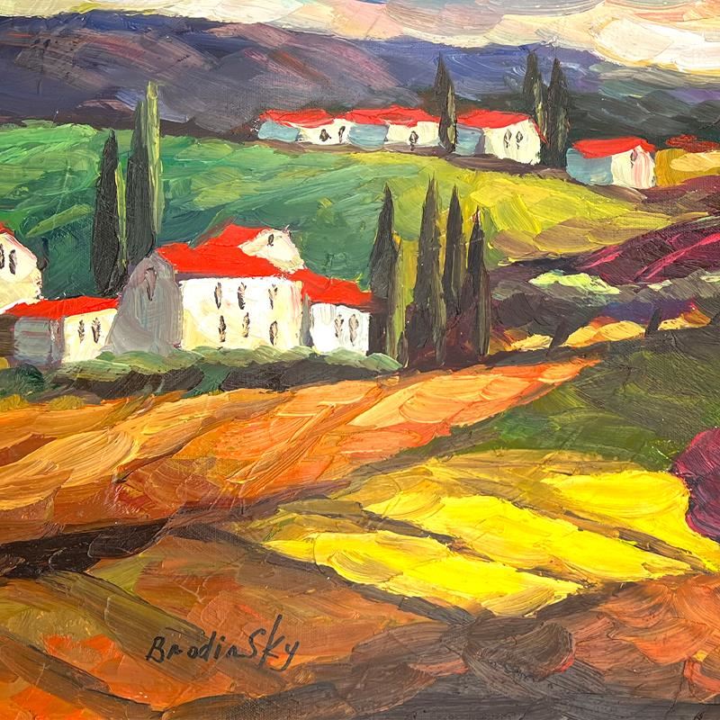 This is an original painting oil on canvas by Slava Brodinsky. Hand signed by the artist, this piece comes with a letter of authenticity. Measures approximately 20" x 24" (image).