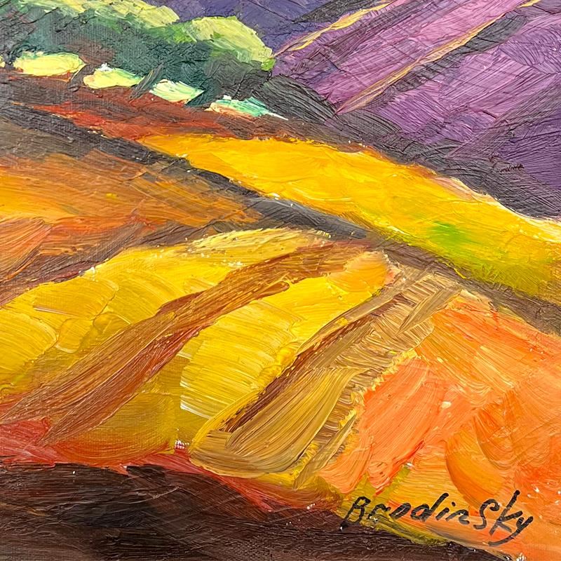 This is an original painting oil on canvas by Slava Brodinsky. Hand signed by the artist, this piece comes with a letter of authenticity. Measures approximately 16" x 12" (image).