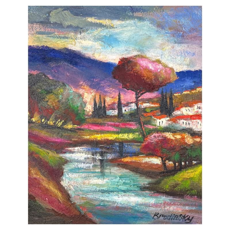 This is an original painting oil on canvas by Slava Brodinsky. Hand signed by the artist, this piece comes with a letter of authenticity. Measures approximately 20" x 16" (image).