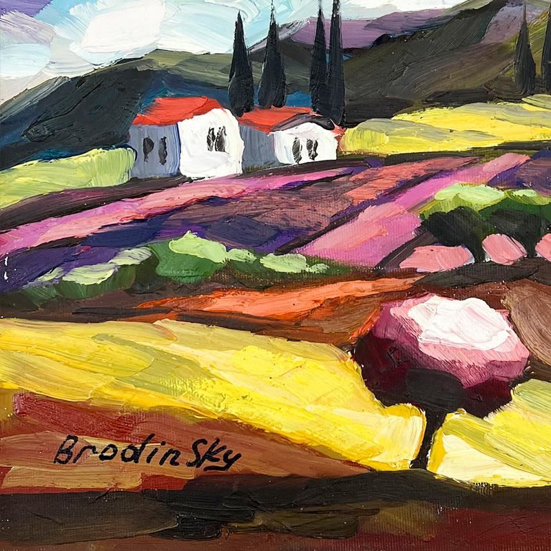 This is an original painting oil on canvas by Slava Brodinsky. Hand signed by the artist, this piece comes with a letter of authenticity. Measures approximately 10" x 10" (image).