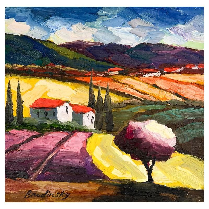 This is an original painting oil on canvas by Slava Brodinsky. Hand signed by the artist, this piece comes with a letter of authenticity. Measures approximately 10" x 10" (image).