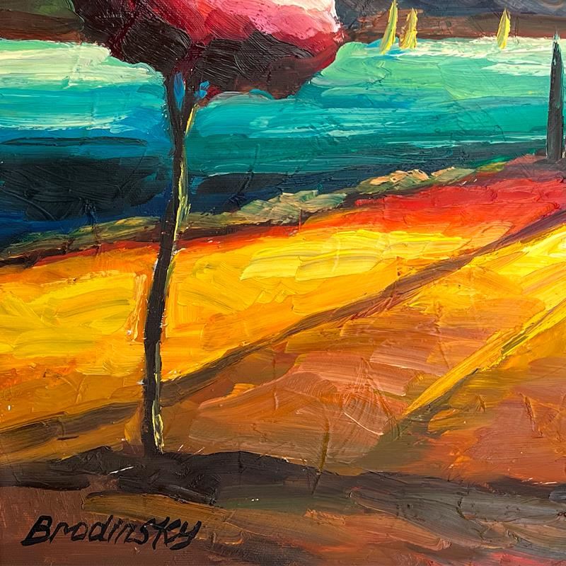 This is an original painting oil on canvas by Slava Brodinsky. Hand signed by the artist, this piece comes with a letter of authenticity. Measures approximately 16" x 20" (image).