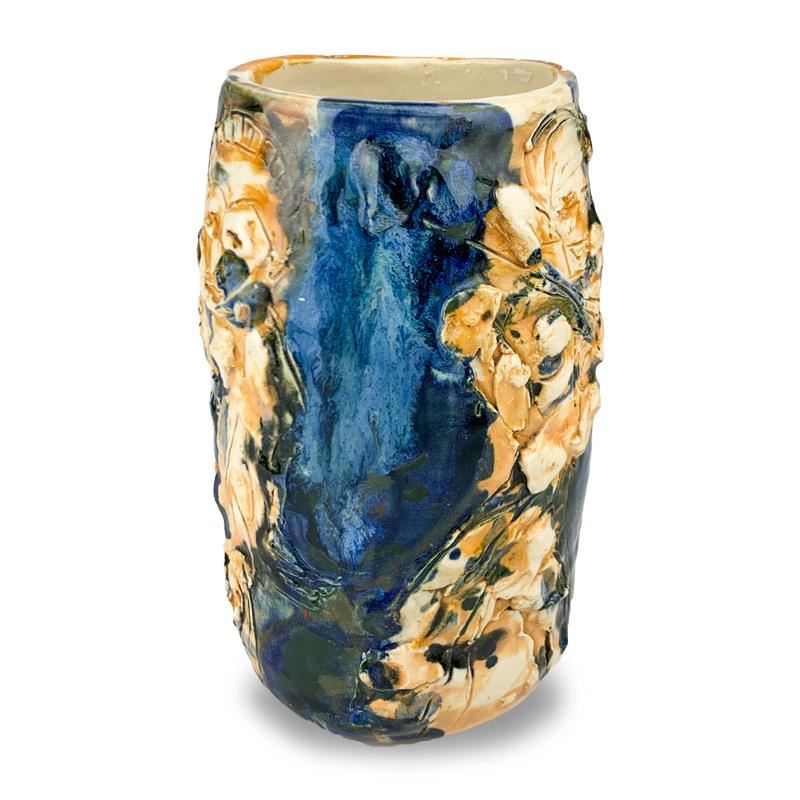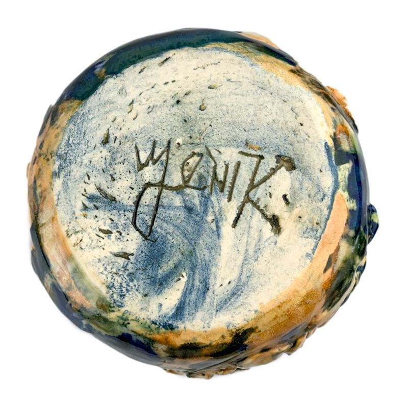 This is hand made ceramic decorative sculpture by Jenik Cook. Hand signed by the artist, it is accompanied by a letter of authenticity. This artwork comes from the artist's personal collection. Measures approximately 7" x 4.5" x 4.5".