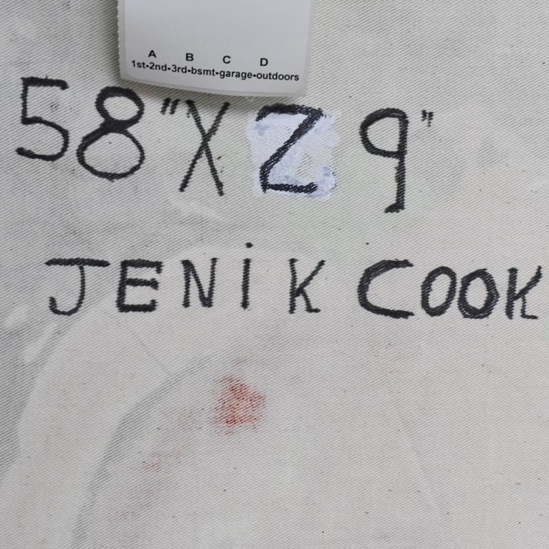This is an original acrylic painting on gallery wrapped canvas by Jenik Cook, hand signed inverso by the artist. Includes Letter of Authenticity. This piece comes from the artist's personal collection. Measures approx. 29" x 58" (image). There is some wear on the corners and edges of this piece.