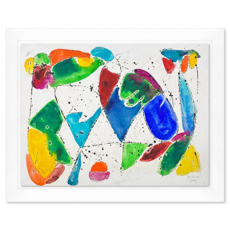 This is an original acrylic painting on paper by Jenik Cook. Hand signed by the artist, it includes Letter of Authenticity. This piece comes from the artist's personal collection. Measures approximately 22" x 28" (framed), 18" x 24" (image). This item requires special handling and may have a longer than usual turnaround.