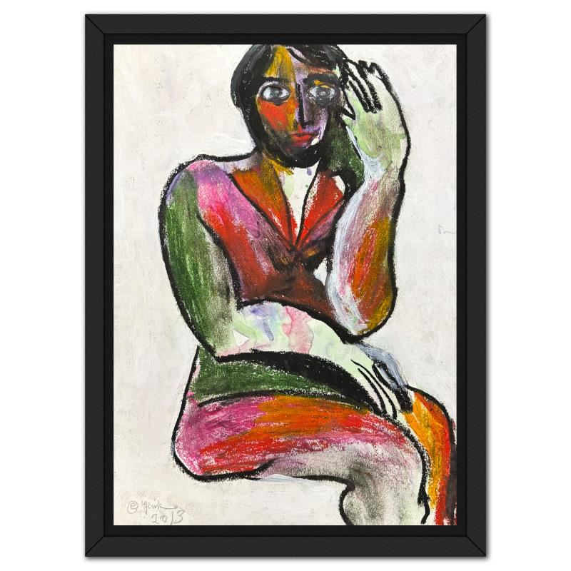 This is an original acrylic painting on paper by Jenik Cook. Hand signed by the artist, it includes Letter of Authenticity. This piece comes from the artist's personal collection. Measures approximately 20.5" x 15.5" (frame), 16.5" x 11.5" (image). This item requires special handling and may have a longer than usual turnaround.