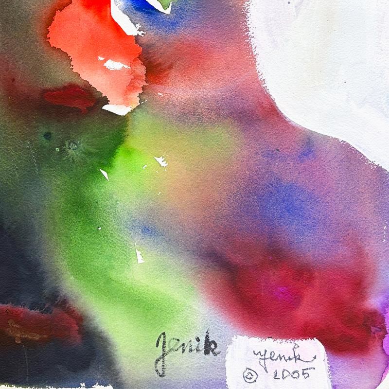 This is an original acrylic painting on paper by Jenik Cook. Hand signed by the artist, it includes Letter of Authenticity. This piece comes from the artist's personal collection. Measures approximately 28" x 22" (frame), 24" x 18" (image). This item requires special handling and may have a longer than usual turnaround.