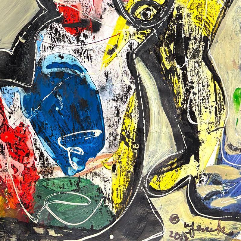 This is an original acrylic painting on paper by Jenik Cook. Hand signed by the artist, it includes Letter of Authenticity. This piece comes from the artist's personal collection. Measures approximately 28" x 23" (frame), 24" x 19" (image). This item requires special handling and may have a longer than usual turnaround.