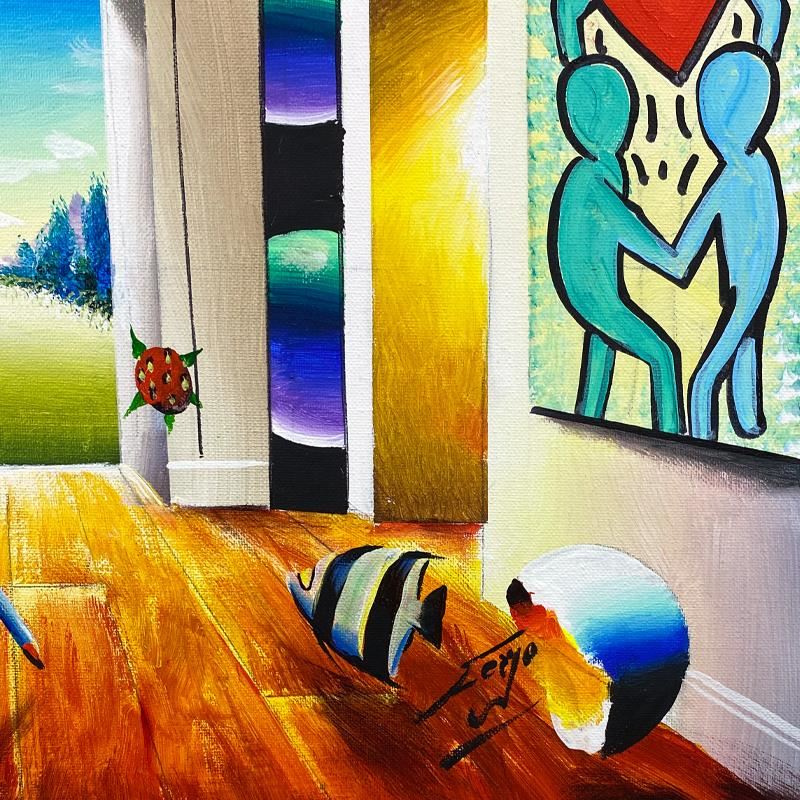This is an original oil painting on canvas by Ferjo, hand signed by the artist. This piece comes custom framed. Includes Letter of Authenticity. Measures approx. 21" x 25" (frame), 15.5" x 19.5" (image).