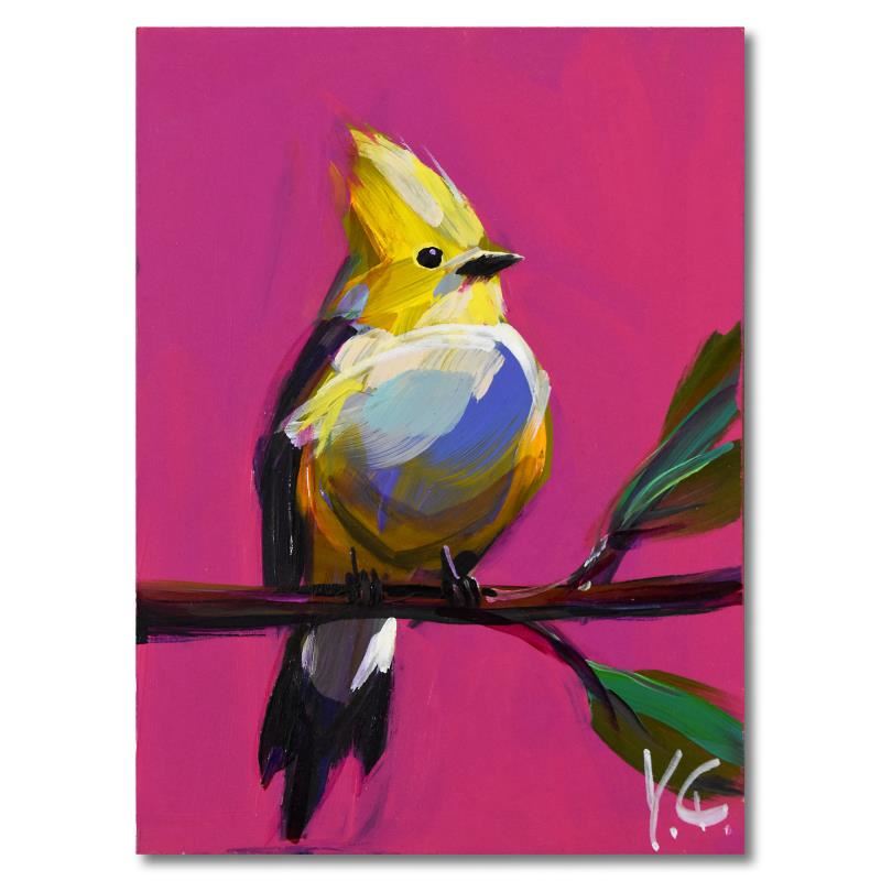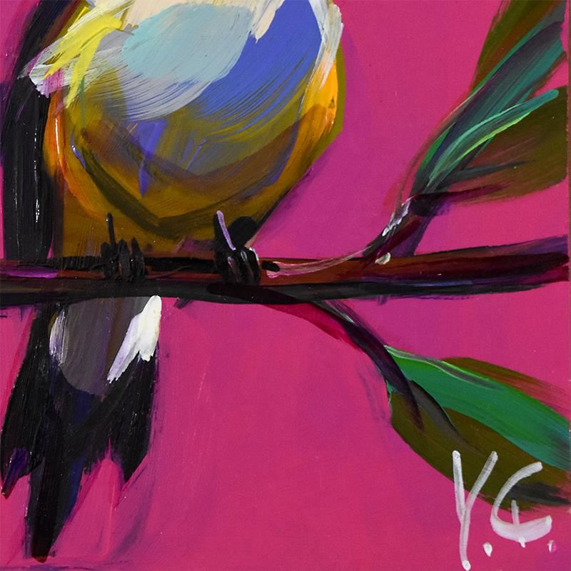 This is an original acrylic painting on board by Yasna Godovanic, hand signed by the artist. Includes Letter of Authenticity. Measures approx. 4.5" x 6" (image).