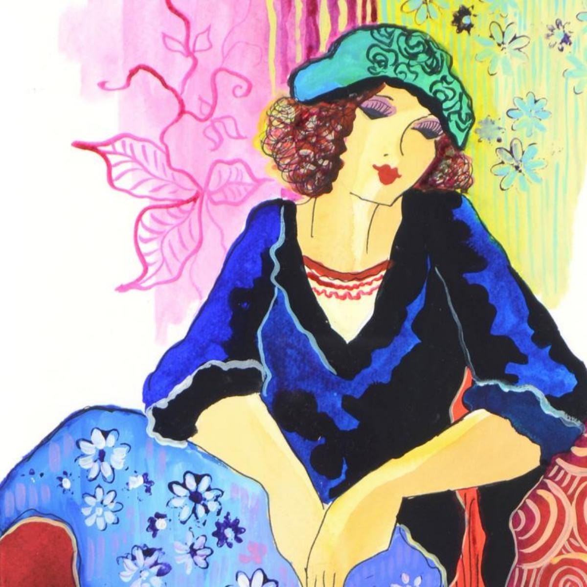 This is an original mixed media watercolor painting on paper by Patricia Govezensky, hand signed by the artist. This piece is custom framed and accompanied by a Certificate of Authenticity. Measures approx. 20" x 16" (frame), 11" x 8" (image).