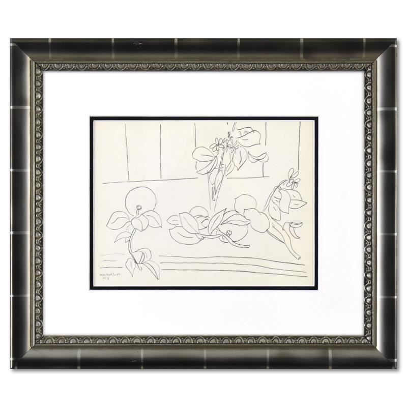This is a lithograph by Henri Matisse (1869-1954), dated 1942 and bearing the plate signature of the artist. This piece comes custom framed. Includes Letter of Authenticity. Measures approx. 21.5" x 18"(frame), 12" x 9" (image). This piece was newly framed but do to handling there is scratch on the top-left frame panel.