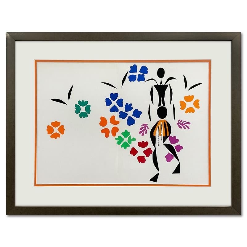 This is a lithograph reproduction by Henri Matisse (1869-1954). This piece comes custom framed. Includes Letter of Authenticity. This lithograph originally came in a book and was folded so there is as slight crease in the center. All examples of this lith