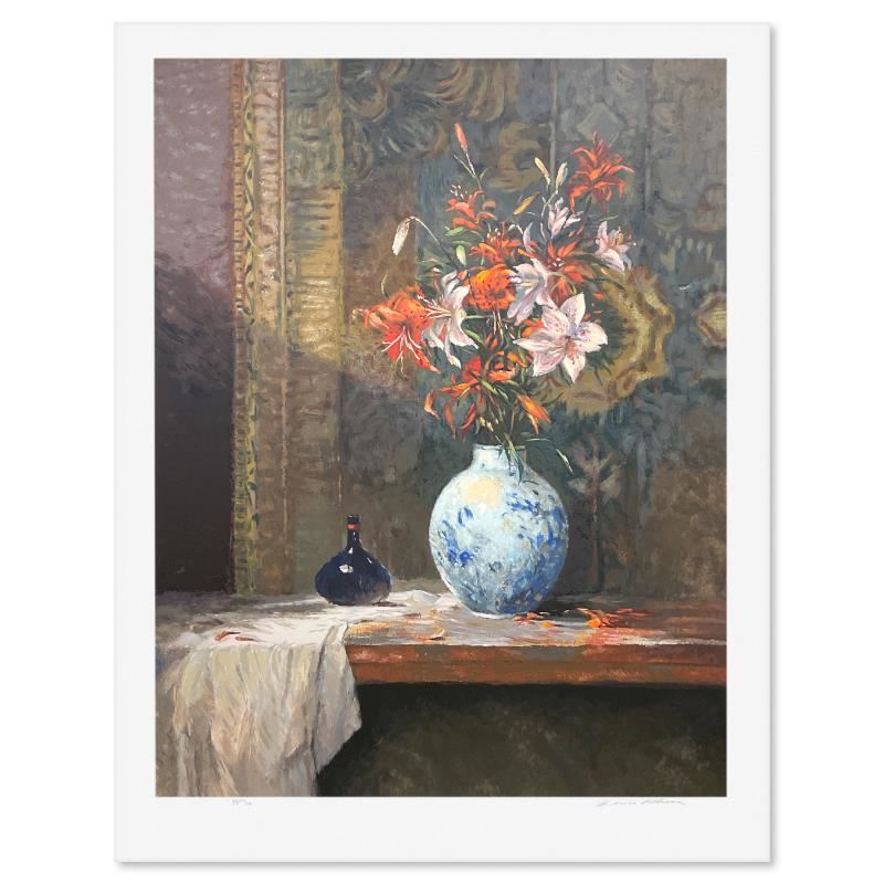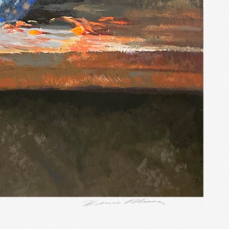 This is a limited edition printer's proof serigraph on deckle edge paper by Henri Plisson (1933-2006), numbered 19/20 and hand signed by the artist. Includes Letter of Authenticity. Measures approx. 42.5" x 32" (border), 37" x 27.5" (image). There is a small hairline crack on the bottom-center part of the image.