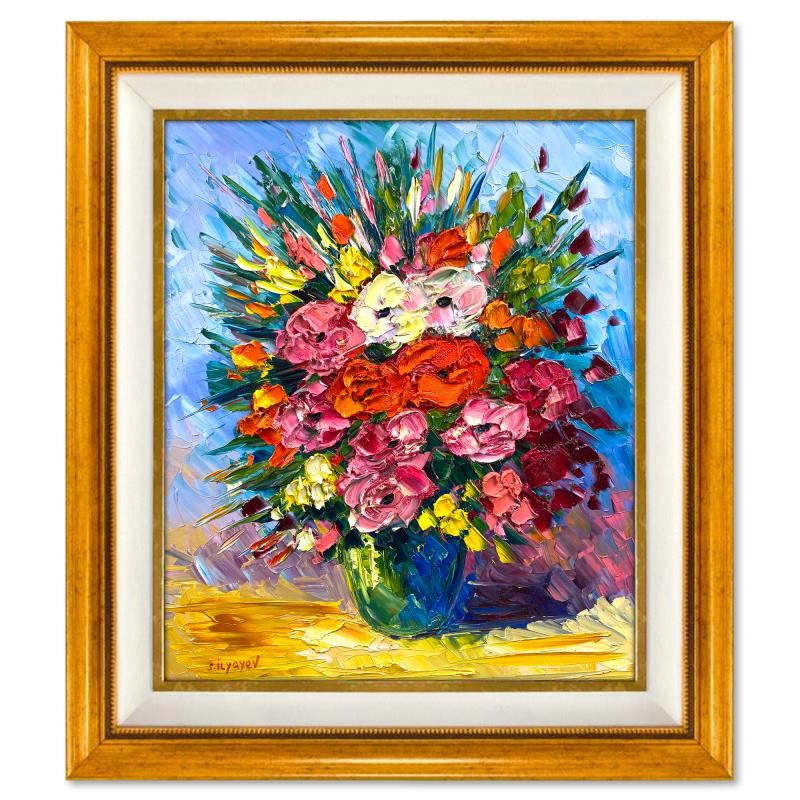 This is an original oil painting on canvas by Slava Ilyayev, hand signed by the artist. This piece comes custom framed. Includes Letter of Authenticity. Measures approx. 30.5" x 26.5" (frame), 23.5" x 19.5" (image).