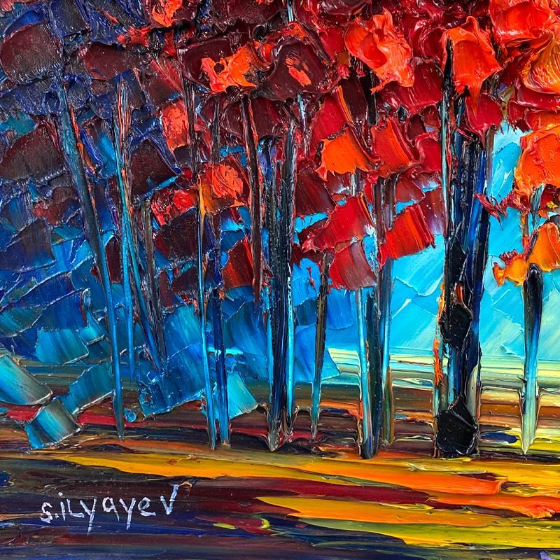 This is an original oil painting on canvas by Slava Ilyayev, hand signed by the artist. This piece comes custom framed. Includes Letter of Authenticity. Measures approx. 22.5" x 36.5" (frame), 15.5" x 29.5" (image).