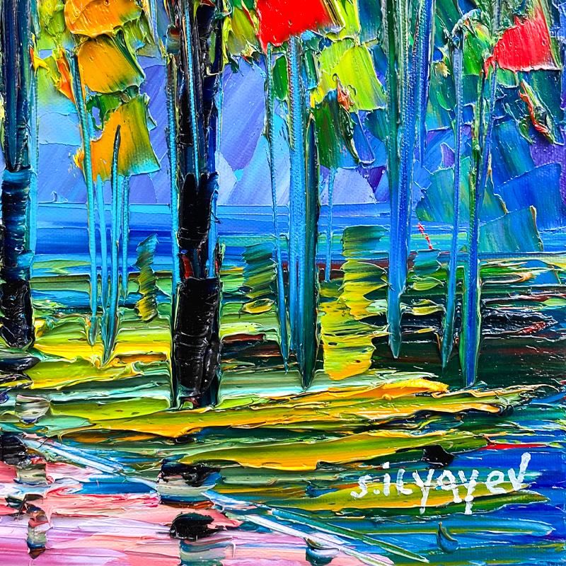 This is an original oil painting on canvas by Slava Ilyayev, hand signed by the artist. This piece comes custom framed. Includes Letter of Authenticity. Measures approx. 30.5" x 38" (frame), 23.5" x 31" (image).