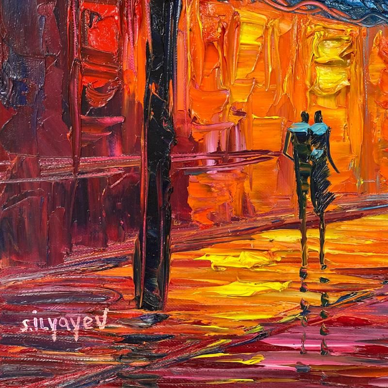 This is an original oil painting on canvas by Slava Ilyayev, hand signed by the artist. This piece comes custom framed. Includes Letter of Authenticity. Measures approx. 30.5" x 36.5" (frame), 23.5" x 29.5" (image).