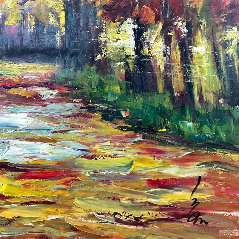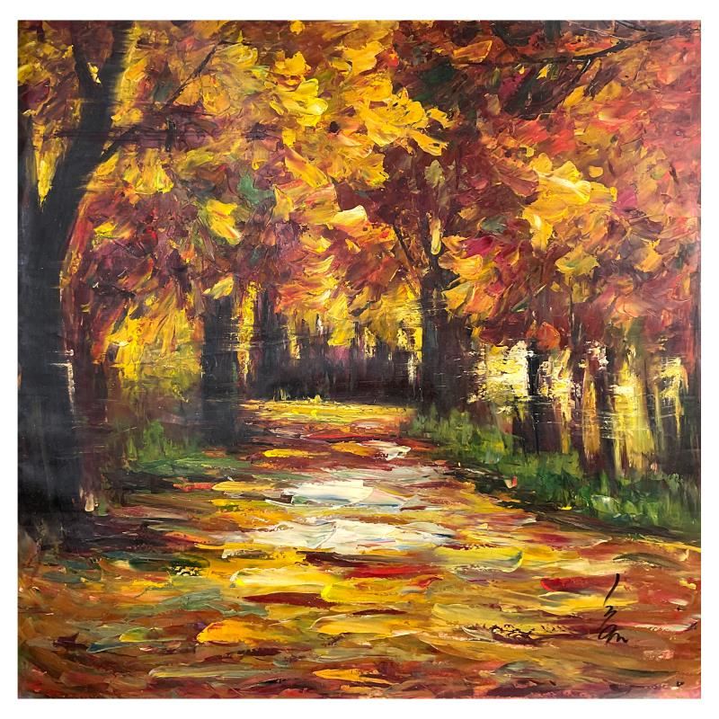 Untitled by Inam Original. All available information is listed in the description and shown in the photo. This is an original oil painting on canvas by Inam, hand signed by the artist. Includes Letter of Authenticity. Measures approx. 50 x 50" (image). There appears to be fine particles on the side of the image.