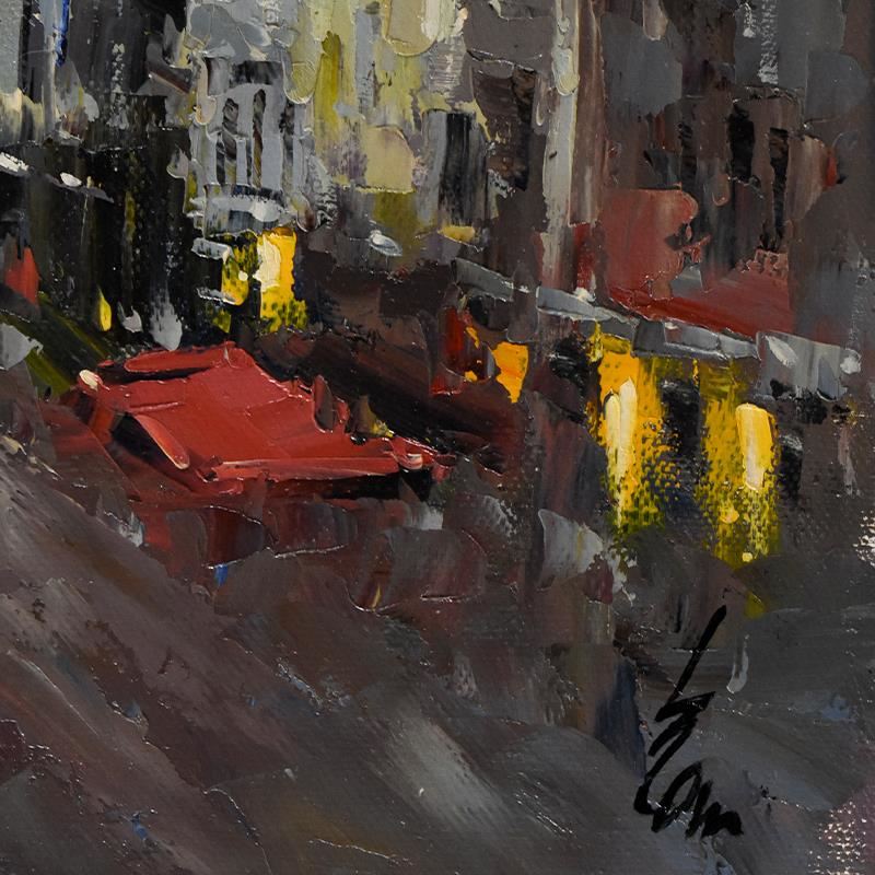This is an original acrylic painting on canvas by Inam, hand signed by the artist. Includes Letter of Authenticity. Measures approx. 40" x 30" (image).