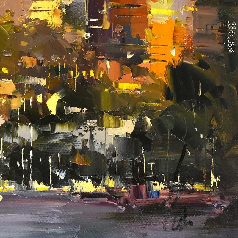 This is an original oil painting on canvas by Inam, hand signed by the artist. Includes Letter of Authenticity. Measures approx. 40" x 20" (image).