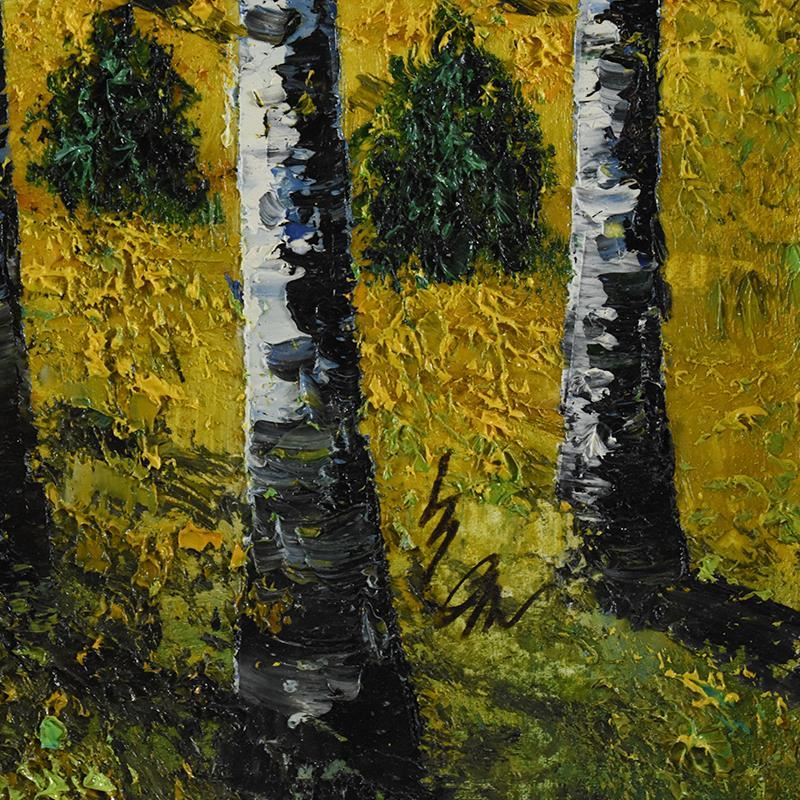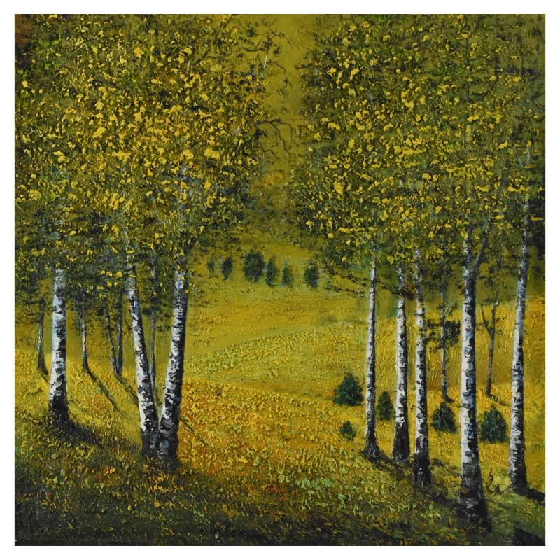 This is an original oil painting on canvas by Inam, hand signed by the artist. Includes Letter of Authenticity. Measures approx. 36" x 36" (image).