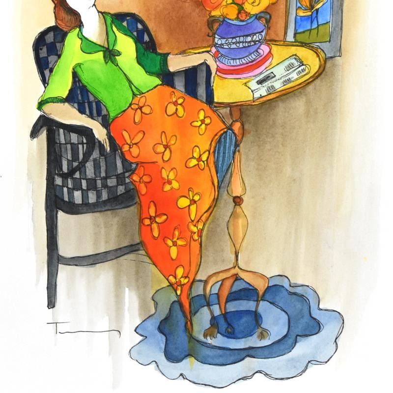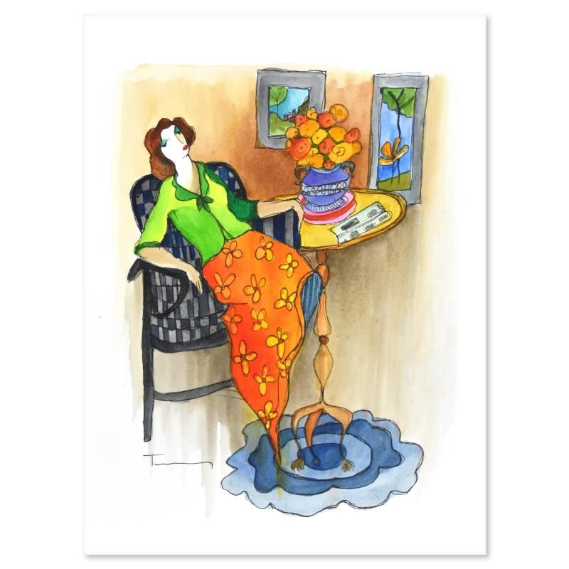 This is an original mixed media watercolor on paper by Itzchak Tarkay (1935-2012), hand signed by the artist. Includes Certificate of Authenticity. Measures approx. 12" x 16" (image).