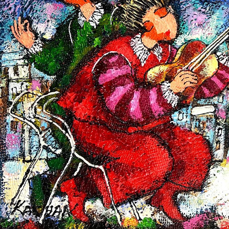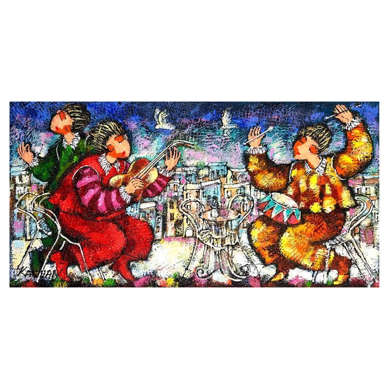 This is an original painting acrylic on canvas by Michael Kachan. Hand signed by the artist, this piece comes with a letter of authenticity. Measures approximately 16" x 30" (image).