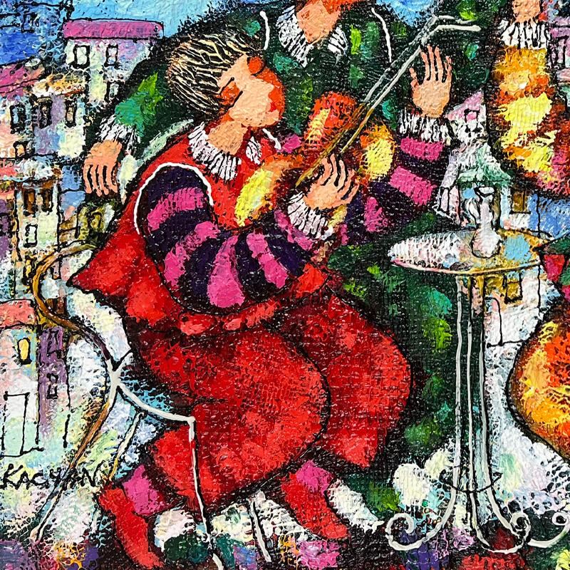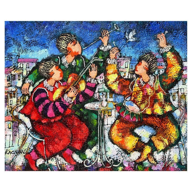 This is an original painting acrylic on canvas by Michael Kachan. Hand signed by the artist, this piece comes with a letter of authenticity. Measures approximately 20" x 24" (image).