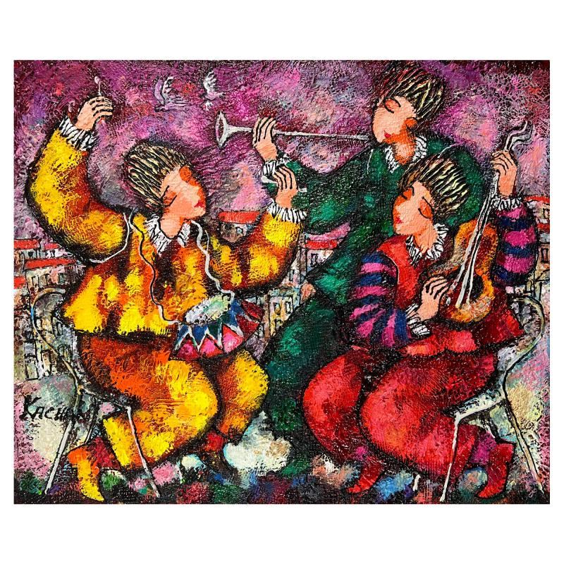 This is an original painting acrylic on canvas by Michael Kachan. Hand signed by the artist, this piece comes with a letter of authenticity. Measures approximately 20" x 24" (image).