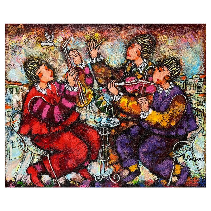 This is an original painting acrylic on canvas by Michael Kachan. Hand signed by the artist, this piece comes with a letter of authenticity. Measures approximately 20" x 24" (image).