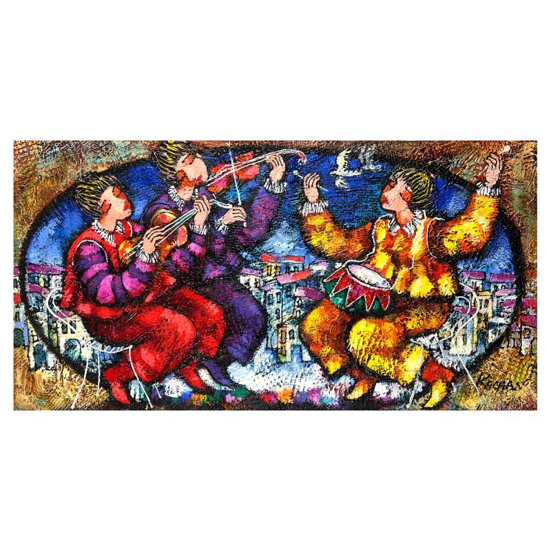 This is an original painting acrylic on canvas by Michael Kachan. Hand signed by the artist, this piece comes with a letter of authenticity. Measures approximately 16" x 30" (image).
