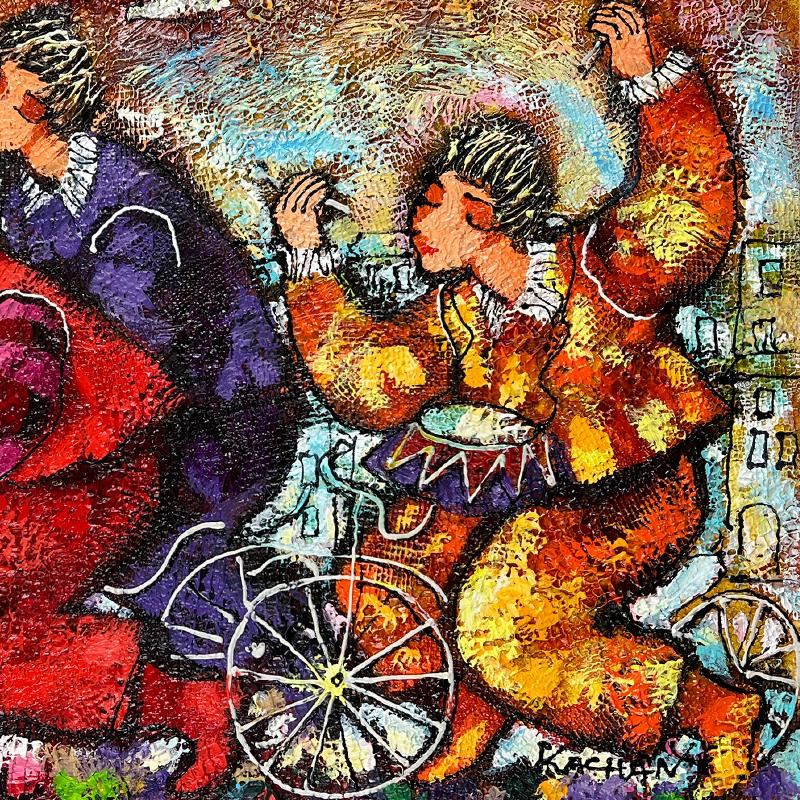 This is an original painting acrylic on canvas by Michael Kachan. Hand signed by the artist, this piece comes with a letter of authenticity. Measures approximately 20" x 24" (image).