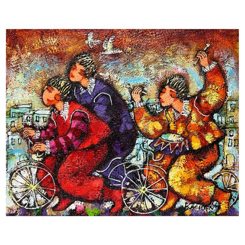 This is an original painting acrylic on canvas by Michael Kachan. Hand signed by the artist, this piece comes with a letter of authenticity. Measures approximately 20" x 24" (image).